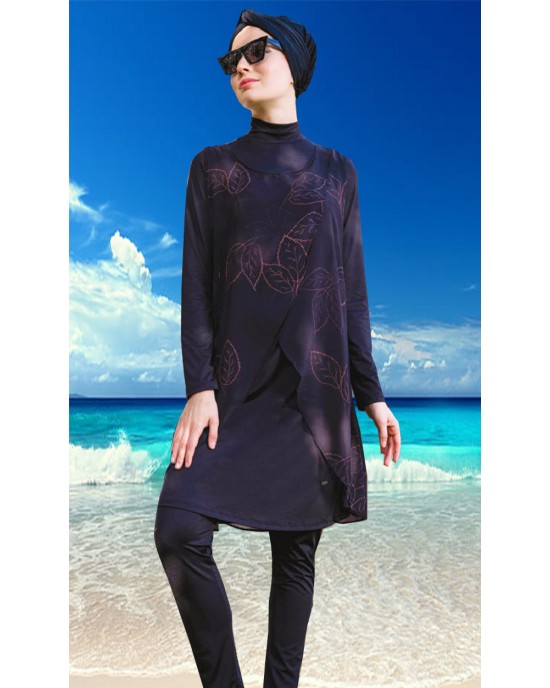 2198 Likralı Pareolu Tesettür Mayo Takımı tesetturmayoburada
