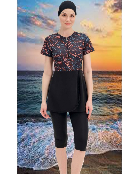2312 Siyah Yarım Kapalı Taytlı Mayo tesetturmayoburada