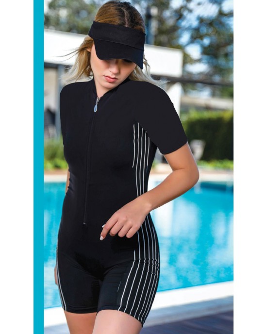 24103 Siyah Kısa Kol Tulum Mayo tesetturmayoburada