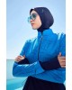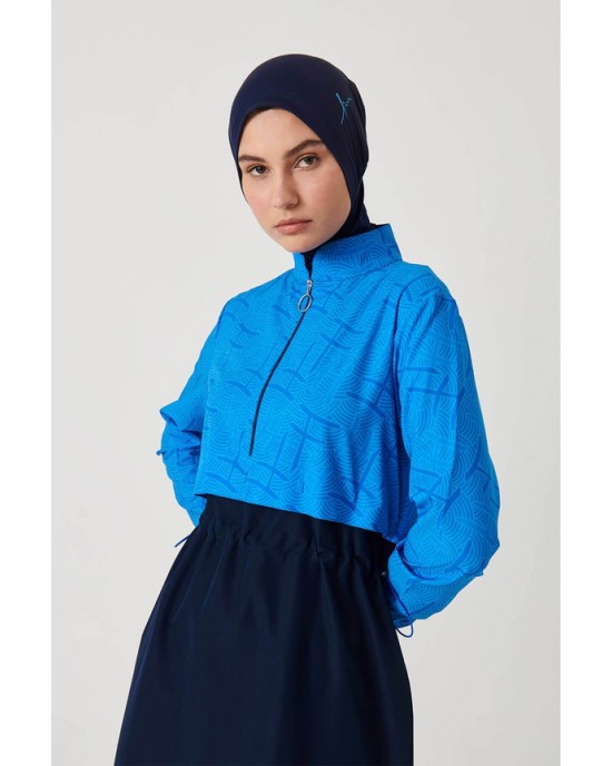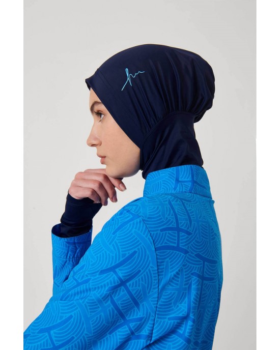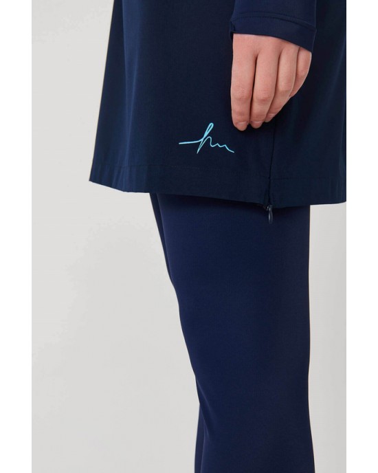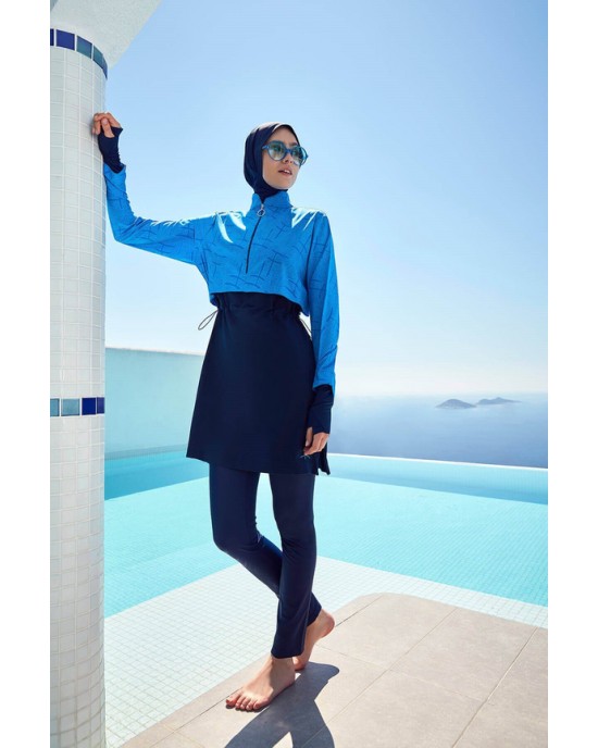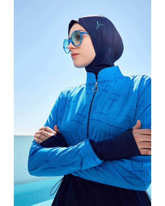 2934 Esila Monogram Desenli Lacivert 5 Parça Tam Tesettür Mayo Takımı tesetturmayoburada