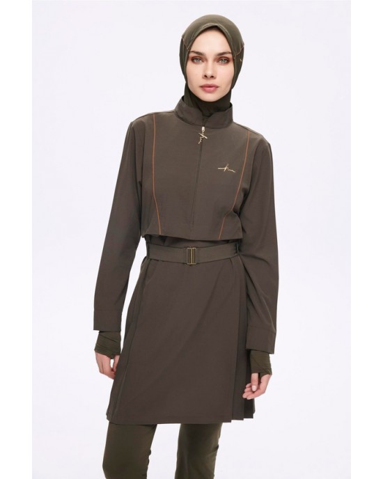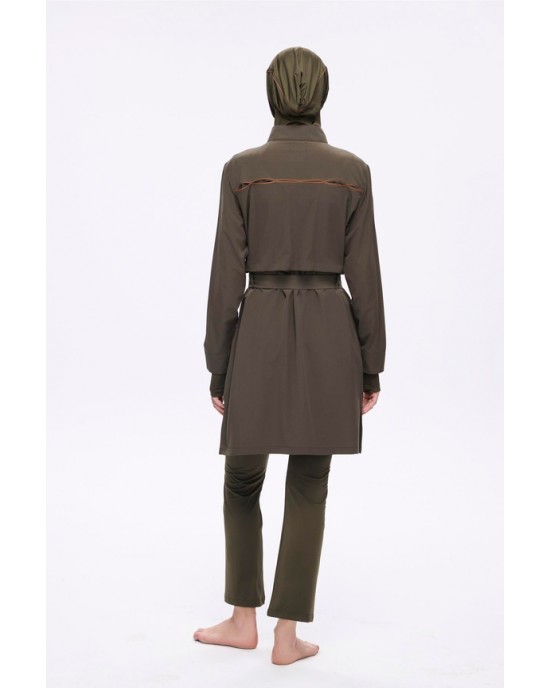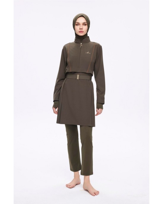 5017 Kemer Toka Detaylı Haki Tesettür Mayo Takımı tesetturmayoburada