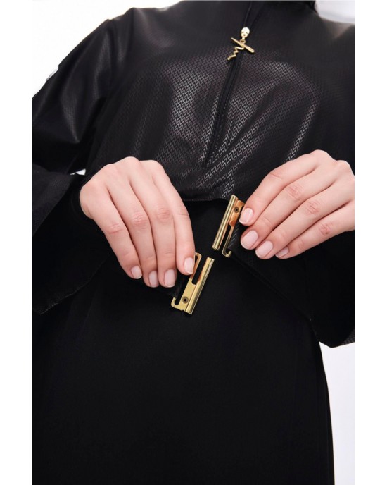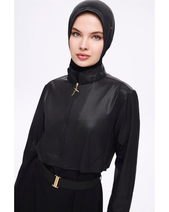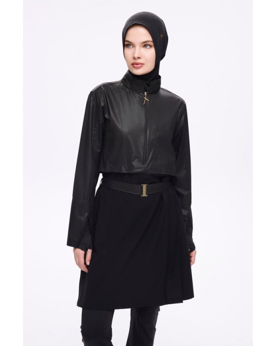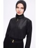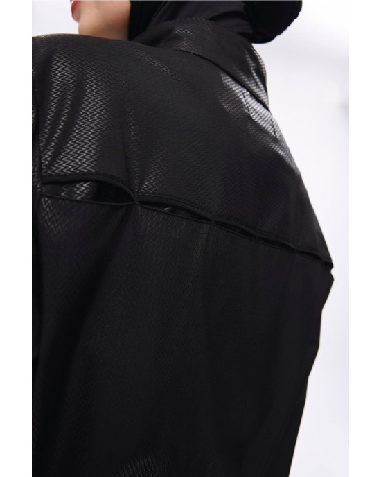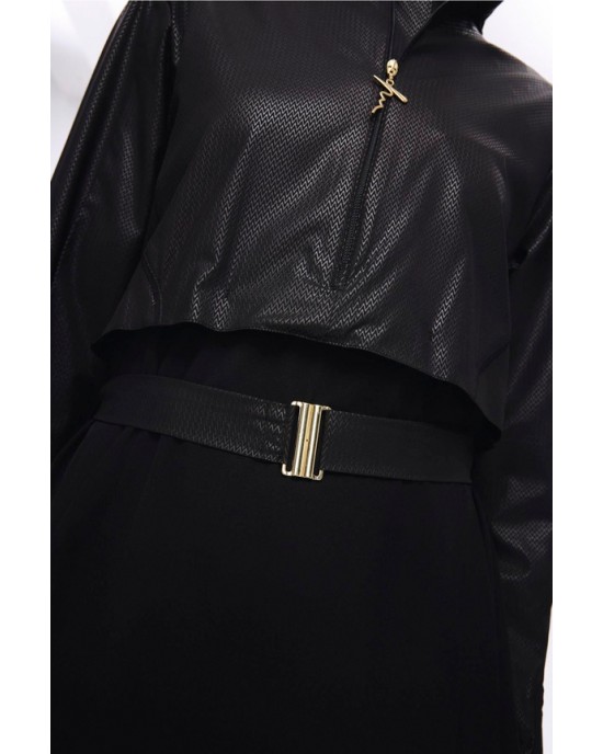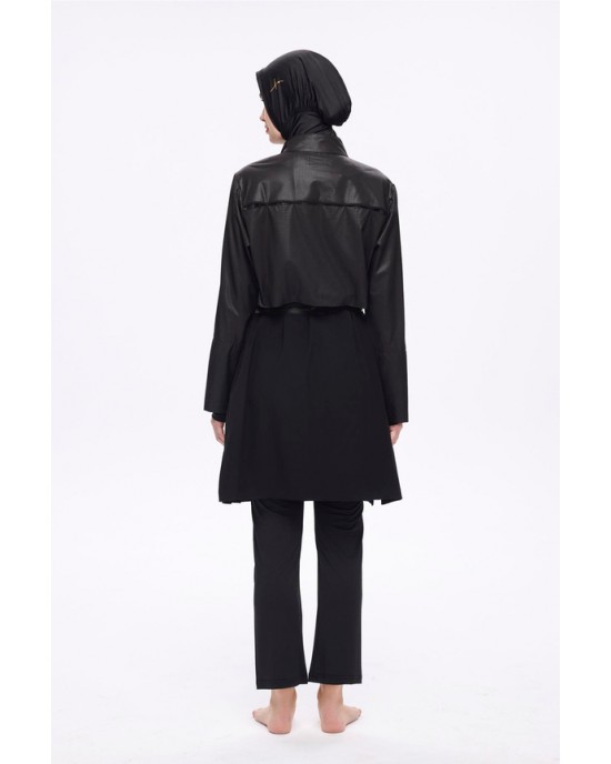 5027 Siyah Kemer Toka Detaylı Dokulu Kumaş Tesettür Mayo Takımı tesetturmayoburada