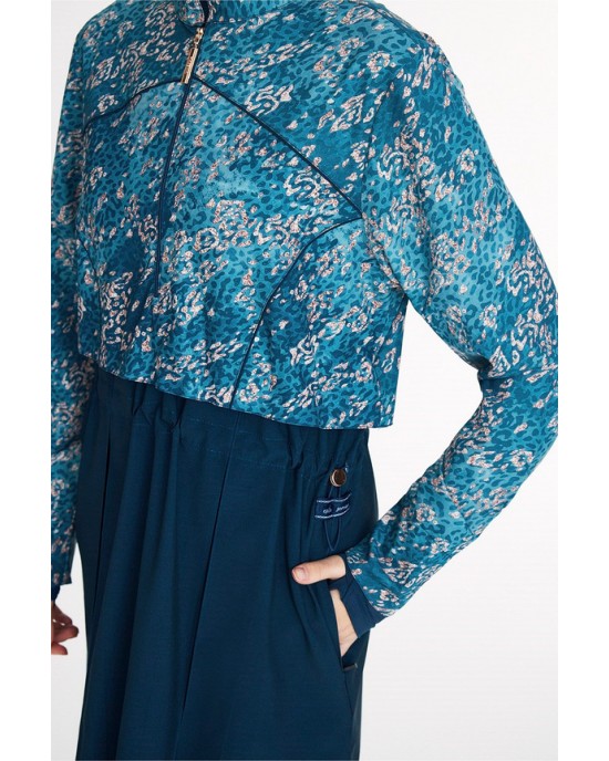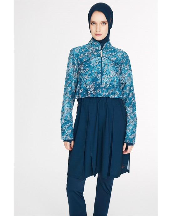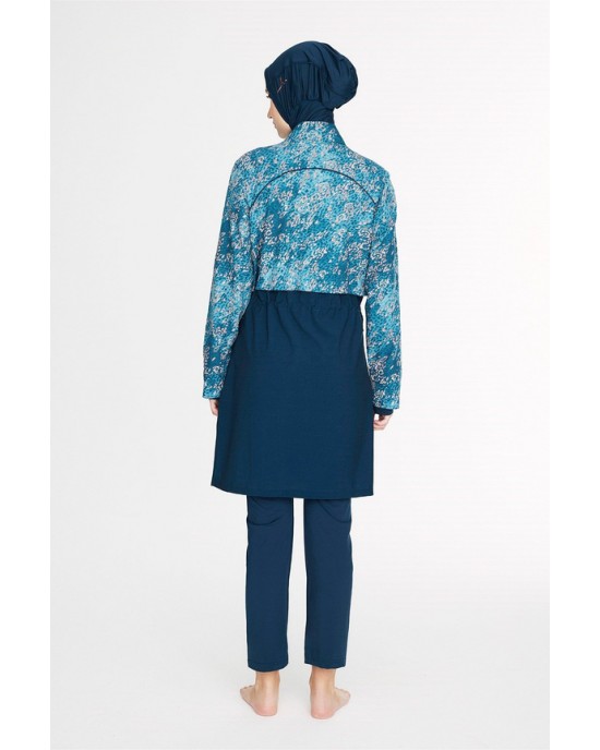 5089 Lacivert Vaha Kol Altı Desenli 5 parça Tesettür Mayo tesetturmayoburada