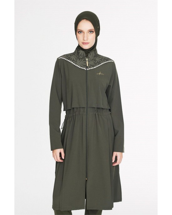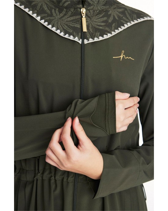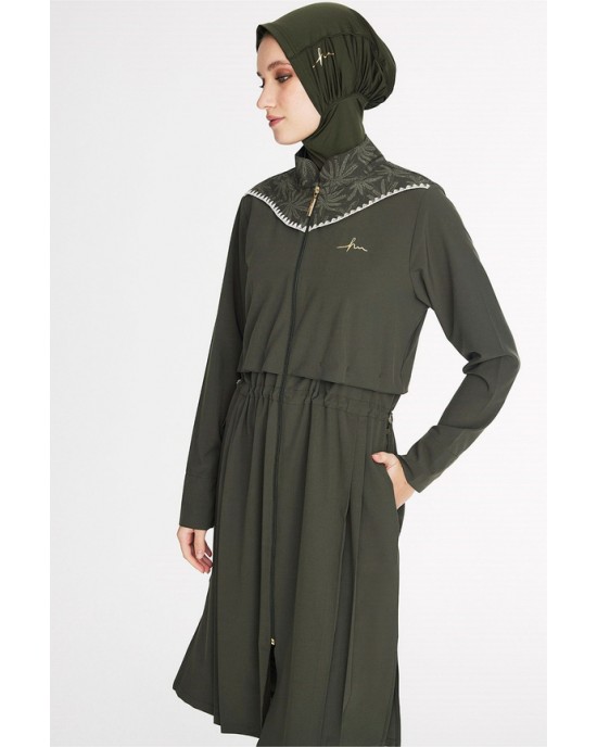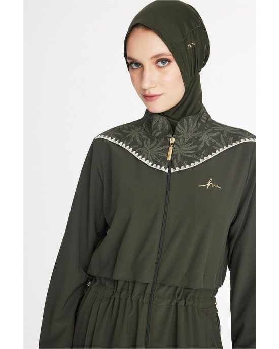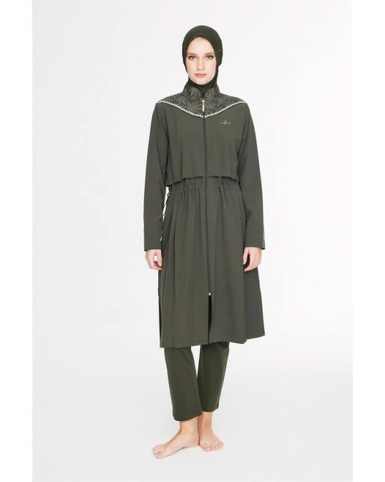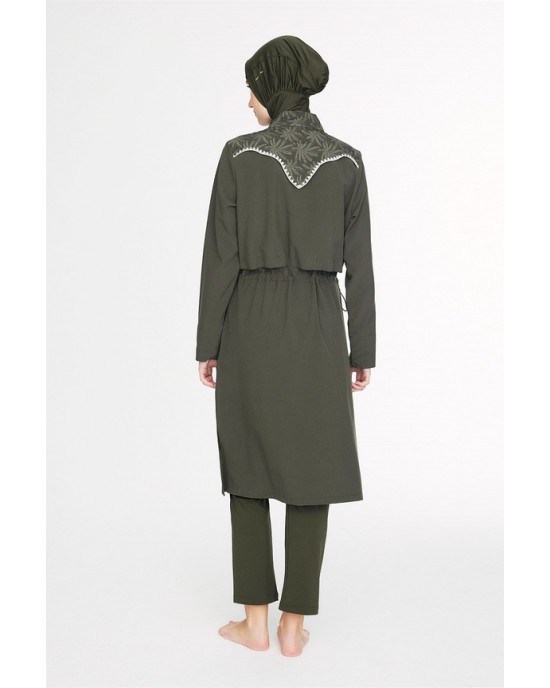 5097 Haki Vaha Omuz Bölgesi Palmiye Desenli 5 parça Tesettür Mayo tesetturmayoburada